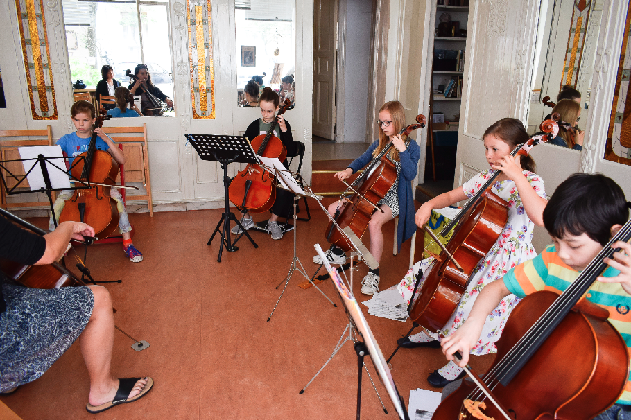 Einmal im Monat gibt es Gruppenunterricht, wo die Kinder gemeinsam ein- und mehrstimmig spielen. Mindestens zweimal im Jahr gibt es Konzerte für die Schüler. Außerdem organisiere ich Besuche beim Geigenbauer, damit die Kinder einen Einblick in das Entstehen und das Herstellen vom Cello gewinnen.